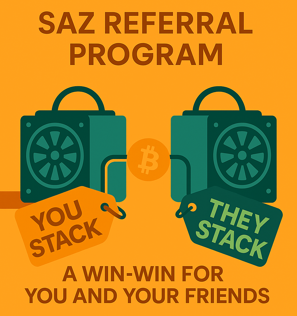 So, whether you’re stacking solo or building your own mini-network of miners, there’s never been a better time to share Saz and stack twice the sats.